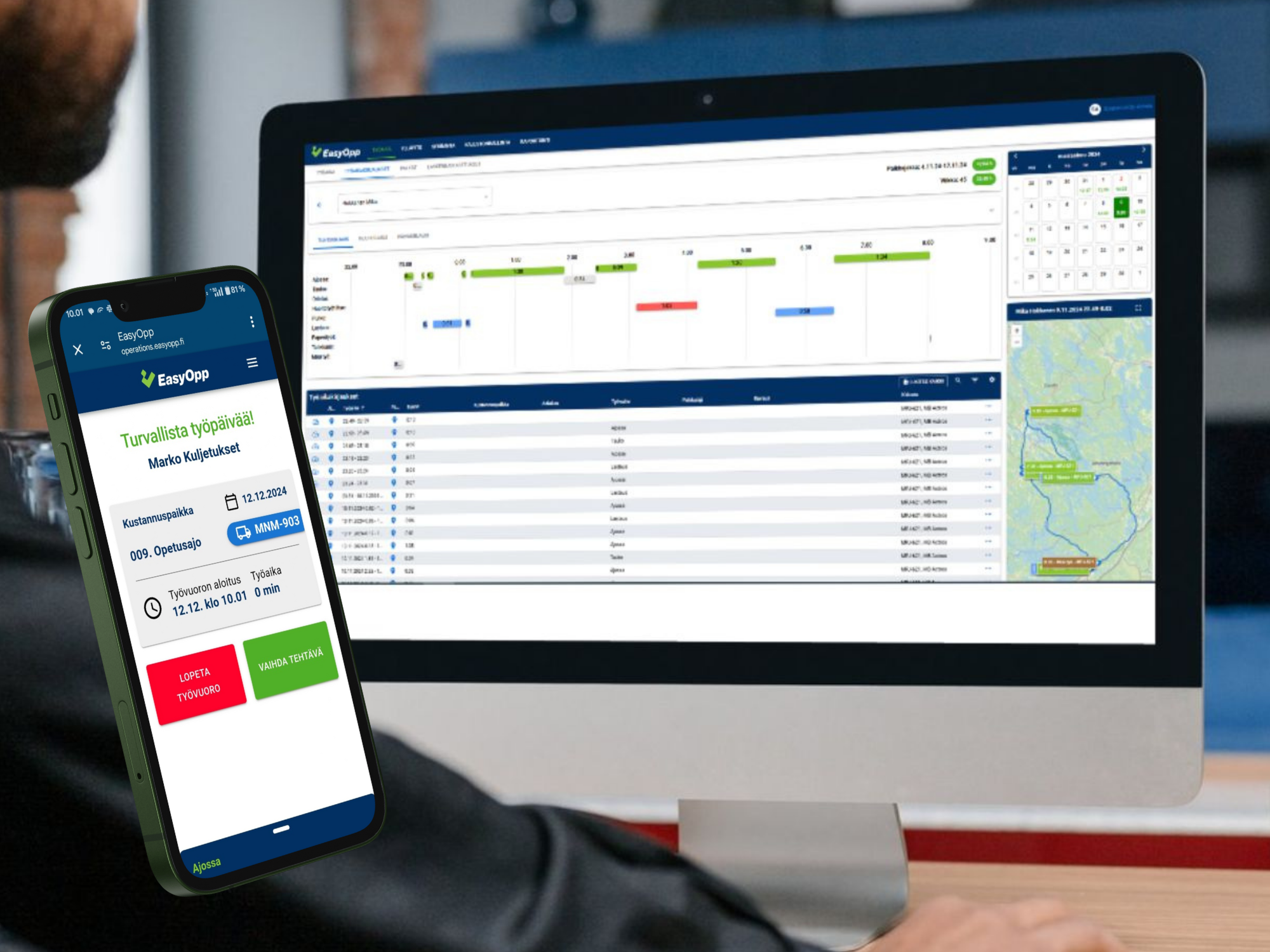 Digitaaliset työkalut, kuten reaaliaikainen työajanseuranta, tilaustenhallinta, kalustonhallinta sekä erilaiset kameraratkaisut, tekevät liikkuvasta työstä sujuvaa. EasyOpp on ohjelmistoyhtiö, joka tarjoaa ja yhdistää nämä työkalut kokonaisvaltaiseksi ratkaisuksi asiakkaan arkeen.