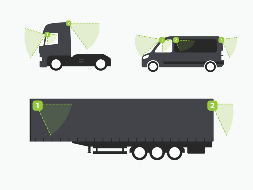 olipa kyseessä työkone, kevyt ajoneuvo tai raskaampi kalusto perävaunuineen. Ohessa muutama esimerkki mahdollisista kamerasijoitteluista. Valitaan juuri teidän tarpeisiinne paras!
