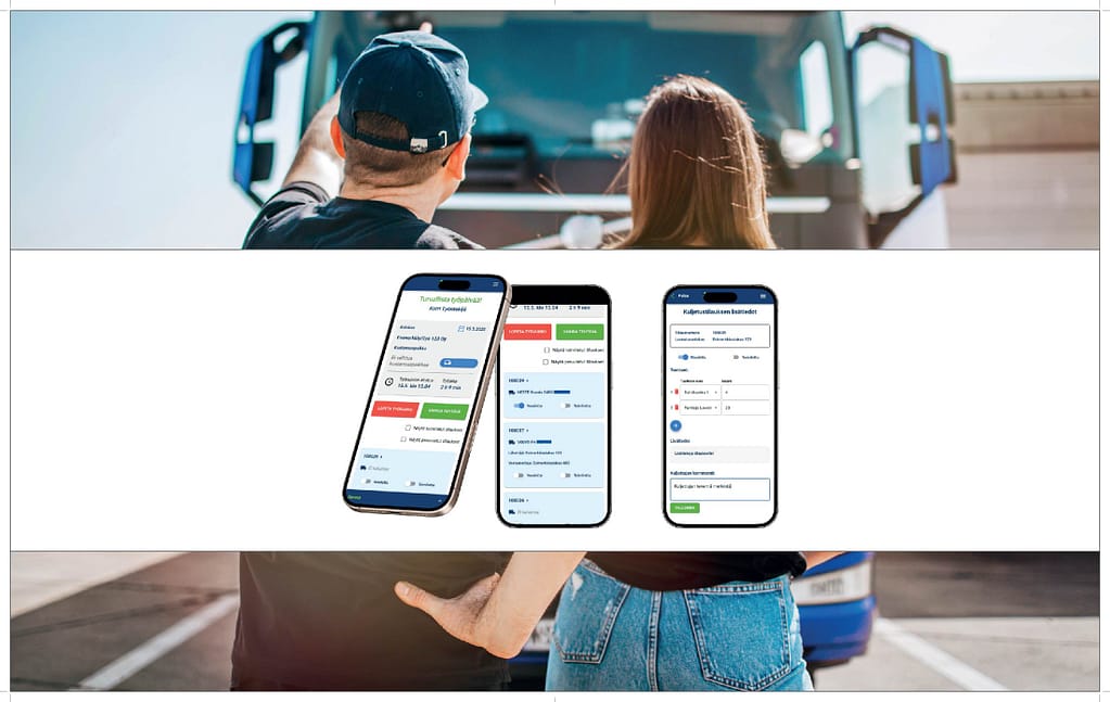 Tiedot kulkevat automaattisesti toimiston ja kuljettajien välillä. Ei puhelinrumbaa, ei viivettä – vain ajantasainen tieto oikeassa paikassa oikeaan aikaan.